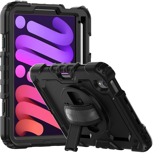 navor Rugged Cover with Screen Protection for iPad Mini 6th Gen (2021) 8.3" Rotatable Kickstand Shoulder & Hand Strap Shockproof Heavy Duty Protective Case