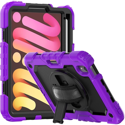 navor Rugged Cover with Screen Protection for iPad Mini 6th Gen (2021) 8.3" Rotatable Kickstand Shoulder & Hand Strap Shockproof Heavy Duty Protective Case