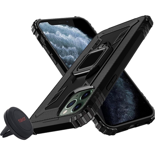 Navor Universal Car Mount & Ring Kickstand Heavy Duty Dual Layer Reinforced Corner, Drop Protection Raised Screen Edge Case Compatible for iPhone 11 [6.1 inch] - Black