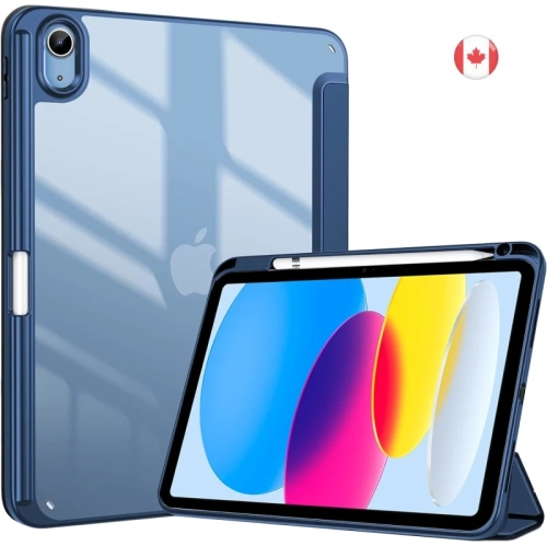 Navy iPad 10th Generation Case with Pencil Holder - Clear Back Cover for 2022 iPad 10.9 inch (A2696, A2757, A2777)