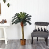 Nearly Natural 48" Sago Silk Palm Tree with Decor Wicker Basket in Green/Brown