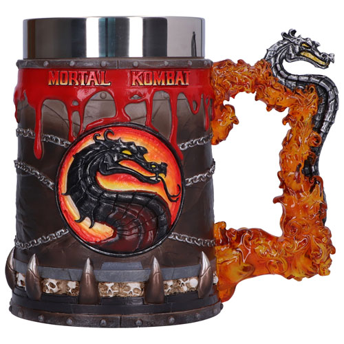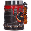 The Nemesis Now Mortal Kombat tankard is forged for true champions. The Elder God dragon logo hangs suspended by Scorpion’s chained kunai, surrounded by blood-dripped details and skulls of fallen fighters. Flames and smoke rise along the handle, revealing the Elder God’s fiery form. The stainless steel insert makes it suitable for beverages.