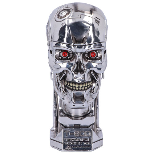 Get ready to face the iconic villain with the Nemesis Now T-800 Terminator 2 head box. Staring straight ahead, this bust exposes the hydraulics beneath a metallic skeletal frame, stripped of all human flesh—a chilling reminder of its inhuman nature. The skull’s top lifts off to reveal a surprisingly spacious storage compartment inside.