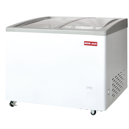 NEW AIR NIF-71-CG: Eye-catching Curved Glass Ice Cream Freezer that entices customers! Spacious interior, easy-access sliding doors, and organized baskets make serving a breeze. Perfect for showcasing your frozen treats in restaurants, stores, or cafeterias.