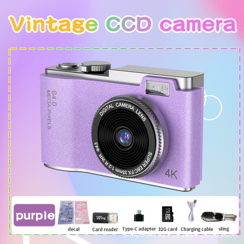New CCD style retro 4K HD portable camera student digital camera gift new camera Selfie dual-lens camera photography portable-purple + 32G memory card