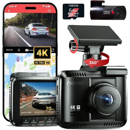 NEXIO N5Pro 4K Dual Dash Cam Front and Rear, WiFi 6 Fast Transfer, Free 64GB Card, GPS, ADAS Safety Alerts, Night Vision, 24H Parking Surveillance, Supercapacitor, App Control, Dash Camera for Cars