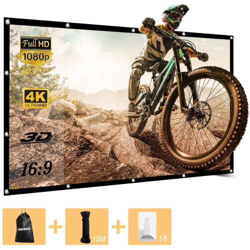 NIERBO 100Inch(221x125cm) Projector Screen Indoor Outdoor Portable Cinema Screen 16:9 HD Anti-Wrinkle Support Double Sided Projection-16 PCS Adhesive Hooks 12M Ropes and Bag