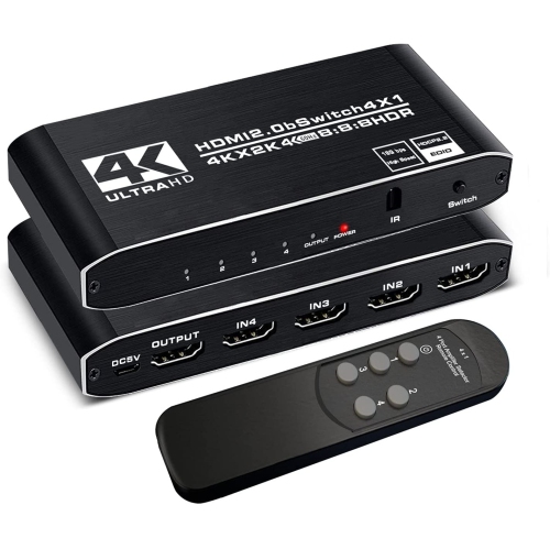 NIERBO 4 Ports HDMI 2.0 Switcher Selector with IR Remote Control, Supports HDCP 2.2 4K@60Hz UltraHD HDR10 3D HD1080P Dolby DST, HDMI Splitter for PS4 Xbox Apple TV Fire Stick