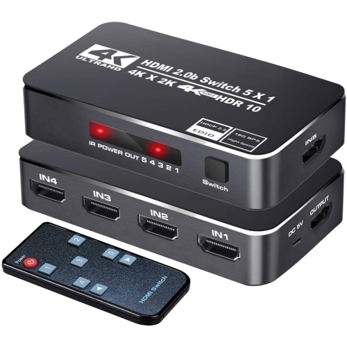 NIERBO 5 Ports 4K 60Hz HDMI 2.0 Switcher Selector with IR Remote, Supports Ultra HD Dolby Vision, High Speed (Max to 18.5Gbps), HDR10, HDCP 2.2 & 3D