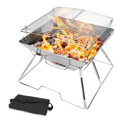 NIERBO Folding Campfire Grill, Camping Fire Pit, Outdoor Wood Stove Burner, 304 Premium Stainless Steel, Portable Camping Charcoal Grill with Carrying Bag for Backpacking Hiking Travel Picnic BBQ