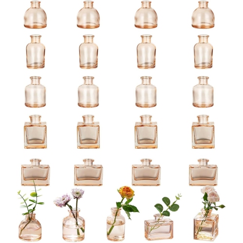 NIERBO Glass Bud Vases for Centerpieces: Champagne Mini Flower Vase Set of 20 Bulk Modern Decor Small Vase for Flowers Cute Decorative Wedding Table Centerpice for Decoration