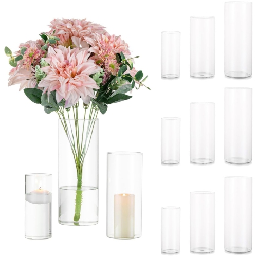 NIERBO Glass Cylinder Vases Set of 12, Hurricane Candle Holder Clear, Glass Cylinder Vase, Glass Vases for Centerpieces for Home Decor Wedding Centerpieces, Events, 6''+ 7.8''+10''