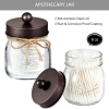 The mason storage jars are an attractive way to organize items like qtips, cotton balls, cotton pads, floss picks, hair ties or any other little bathroom necessities and accessories. Plus they're simple and affordable to make!