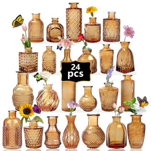 NIERBO Mini Bud Vases Set of 24 Wedding Centerpieces for Tables, Amber Bud Vases for Flowers, Small Flower Vases Suitable for Birthday, Anniversary, Wedding Reception, Baby Shower
