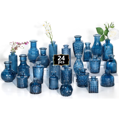 NIERBO Mini Bud Vases Set of 24 Wedding Centerpieces for Tables, Blue Bud Vases for Flowers, Small Flower Vases Suitable for Birthday, Anniversary, Wedding Reception, Baby Shower