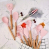 NIERBO Silicone Cooking Utensil Set,12 PCS Non-stick Silicone Cooking Utensils Set For Home or Picnic,Wooden Handle Heat Resistant(Pink)