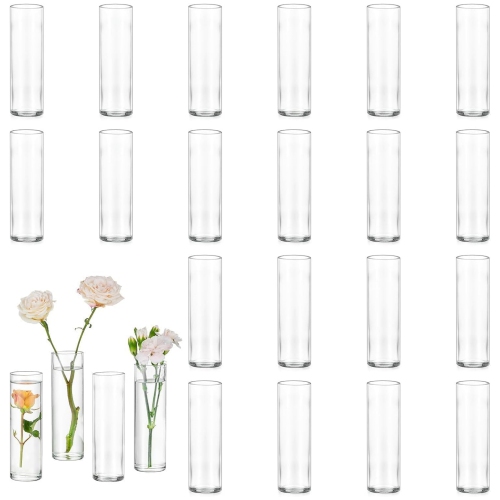 NIERBO Small Cylinder Glass Vases for Centerpieces: Clear Vase Set of 24 Modern Centerpiece Vases for Table Wedding Home Party Decor 5.9In Bud Vase for Flowers