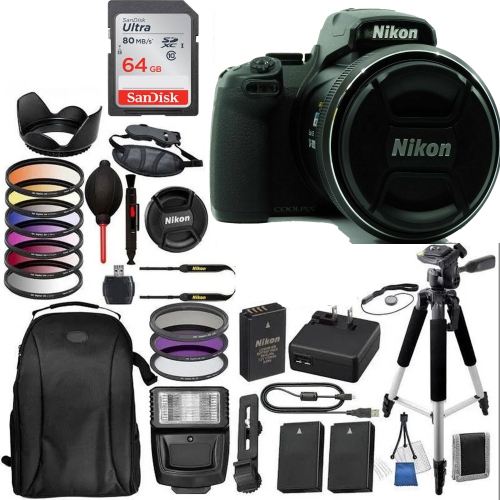 Shoot at staggering distances with the 125x optical zoom COOLPIX P1000 Digital Camera from Nikon. This camera, which has a 16MP backside illuminated CMOS sensor, features a built-in NIKKOR lens with a 35mm equivalent focal length range of 24-3000mm. You can zoom even further with 250x Dynamic Fine digital zoom, which will give you an equivalent focal length of 6000mm. Coupled with these extreme focal lengths is Nikons Dual Detect Optical Vibration Reduction, which provides 5 stops of optical image stabilization and ensures your telephoto shots are crisp.Gracing the back of the camera are a 3.2 vari-angle, 921k-dot LCD monitor and an eye-level 2.36m-dot electronic viewfinder, so your subjects will always be easy to see. The camera is also capable of recording 4K UHD video at 30 or 25 fps and supports an external microphone via a 3.5mm connector.Camera shake may be a concern while shooting at extreme focal lengths on a tripod. Or, you may need to otherwise remotely operate the P1000. The optional ML-L7 remote satisfies these needs with wireless operation off the cameras zoom, shutter, and other settings. Once youre done with a shoot, immediately access your photos on a paired smartphone via the Nikon SnapBridge app and the cameras built-in Wi-Fi and Bluetooth.16MP BSI CMOS Image Sensor