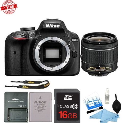 A sleek and now connected DSLR for all, the black Nikon D3400 is designed to produce better image quality than your smartphone, yet work seamlessly with your mobile devices for sharing your memories. Utilizing a DX-format 24.2MP CMOS sensor and EXPEED 4 image processor, this camera provides a native sensitivity range from ISO 100-25600 to suit working in a variety of lighting conditions, and the sensor and processor combination also provides a 5 fps continuous shooting rate as well as Full HD 1080p video recording at 60 fps. The sensors design also omits an optical low-pass filter in order to achieve greater sharpness and resolution from both photos and videos.Beyond image creation, the D3400 also features SnapBridge, which utilizes Bluetooth connectivity, for wireless sharing of images to your mobile device, including automatic sharing of 2MP images between the camera and your mobile device. The lightweight camera body incorporates a 3.0 921k-dot LCD screen for live view monitoring and image review and, catering to first-time DSLR owners, the D3400 also features a helpful Guide Mode to aid in achieving specific photographic looks or techniques, such as how to produce shallow depth of field imagery in a helpful, step-by-step manner. Ten different Special Effects are also available in-camera to creatively refine the look of both stills and movies. 24.2MP DX-Format Sensor and EXPEED 4 Processor