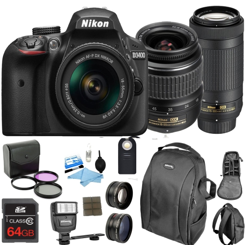 A sleek and now connected DSLR for all, the Nikon D3400 is designed to produce better image quality than your smartphone, yet work seamlessly with your mobile devices for sharing your memories. Utilizing a DX-format 24.2MP CMOS sensor and EXPEED 4 image processor, this camera provides a native sensitivity range from ISO 100-25600 to suit working in a variety of lighting conditions, and the sensor and processor combination also provides a 5 fps continuous shooting rate as well as Full HD 1080p video recording at 60 fps. The sensors design also omits an optical low-pass filter in order to achieve greater sharpness and resolution from both photos and videos.Beyond image creation, the D3400 also features SnapBridge, which utilizes Bluetooth connectivity, for wireless sharing of images to your mobile device, including automatic sharing of 2MP images between the camera and your mobile device. The lightweight camera body incorporates a 3.0 921k-dot LCD screen for live view monitoring and image review and, catering to first-time DSLR owners, the D3400 also features a helpful Guide Mode to aid in achieving specific photographic looks or techniques, such as how to produce shallow depth of field imagery in a helpful, step-by-step manner. Ten different Special Effects are also available in-camera to creatively refine the look of both stills and movies. 24.2MP DX-Format Sensor and EXPEED 4 Processor