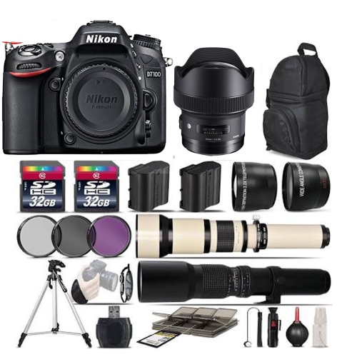 Nikon D7100 DSLR Camera || SIGMA 14MM ||650-1300mm Lens ||500mm - 5Lens Kit, Black