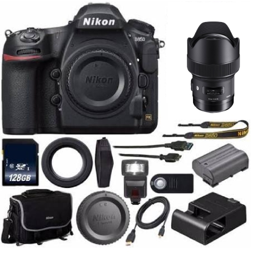 Nikon D850 DSLR Body Only +SIGMA 14mm ART Lens+128GB Memory Card+External Flash+HDMI Cable+Wireless Remote Bundle
