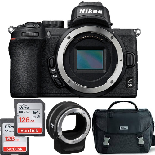 Nikon Z50 Mirrorless Digital Camera (Body Only) with FTZ Mount Adapter Starter Bundle - US Version w/ Seller Warranty