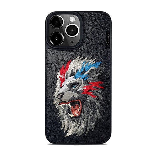 Nimmy Dazzling Series Lion Embroidered Leather Case for iPhone 15 Pro