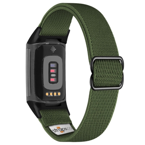 Nylon Stretch Band for Fitbit Charge 5 - Army Green - Black Adapter
