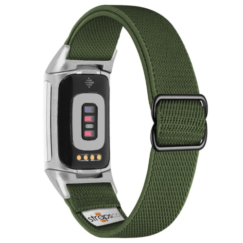 Nylon Stretch Band for Fitbit Charge 5 - Army Green - Silver Adapter
