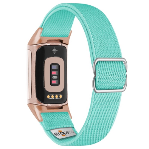 Nylon Stretch Band for Fitbit Charge 5 - Mint - Rose Gold Adapter