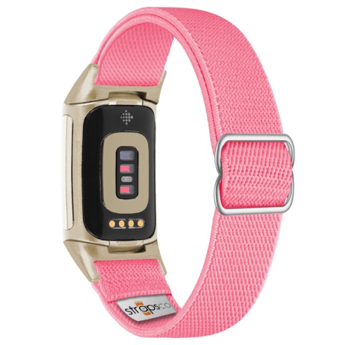 Nylon Stretch Band for Fitbit Charge 5 - Pink - Champagne Gold Adapter
