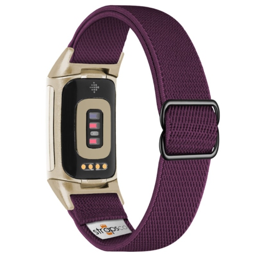 Nylon Stretch Band for Fitbit Charge 5 - Purple - Champagne Gold Adapter