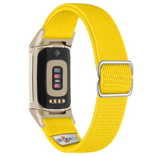 Nylon Stretch Band for Fitbit Charge 5 - Yellow - Champagne Gold Adapter