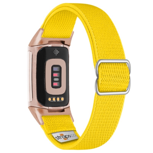 Nylon Stretch Band for Fitbit Charge 5 - Yellow - Rose Gold Adapter