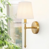 Add warmth and sparkle to your modern bath vanity with our elegant Hollywood Regency wall light. The sleek finish accentuates the elegant linen shade, while clear lucite adds a fine touch of glam. This versatile sconce light is perfect for mid-century modern and contemporary spaces.