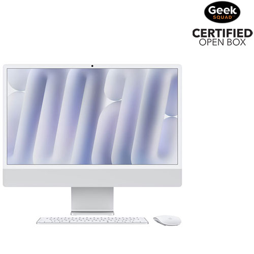Apple iMac, the ultimate all-in-one desktop, is built for Apple Intelligence. Supercharged by the M4 chip, browsing and multitasking across apps feels snappier. With a stunning 24-inch 4.5K Retina display in an iconic design and advanced camera, mics, and speakers, iMac is brilliant for work and play.Geek Squad Open Box