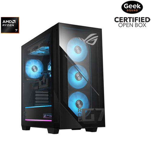Every match feels epic on the ASUS ROG GM700 gaming PC. It delivers robust performance with an AMD Ryzen 7 8700X processor and NVIDIA GeForce RTX 5060TI Dual GPU for immersive gameplay. Enjoy high-speed multitasking with 32GB DDR5 RAM and PCIe Gen 5 storage support. Liquid cooling system keeps your PC cool during intense sessions. Bold RGB lighting with AURA Sync adds a striking look.Geek Squad Open Box