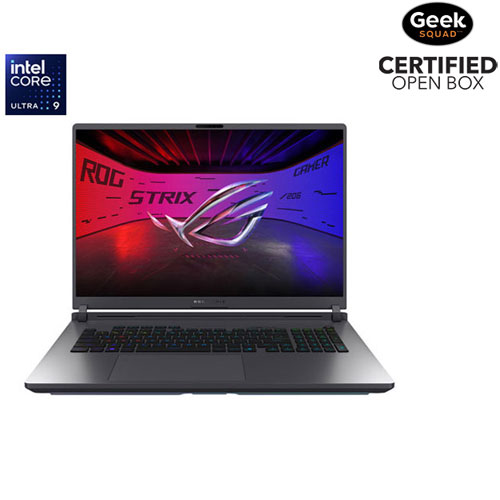 Dominate every match with the ASUS ROG Strix G18 gaming laptop. Its 240Hz WQXGA display delivers stunning clarity, while the Intel Core Ultra 9 275HX processor and 32GB RAM ensure seamless speed and precision. The 1TB solid state drive stores all your apps and games. Advanced cooling system lets you stay ahead in every battle. RGB lighting lets you customize your gaming setup.Geek Squad Open Box