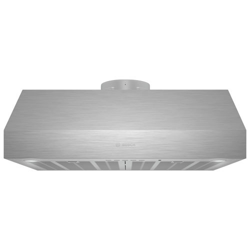 Breathe easy and fresh while cooking with the Bosch 800 Series 30-inch under cabinet range hood. Boasting three fan speeds, this unit provides powerful and flexible ventilation for your kitchen. The metal grease filter captures grease to prevent mess, while two LED lights offer great visibility. Home Connect with Alexa lets you control the fan with voice commands.Open Box - Bosch 800 Series 30" Under Cabinet Range Hood (DUH80553UC) - Stainless Steel - Perfect Condition