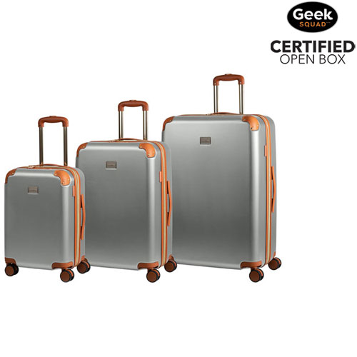The Champs Freedom collection three-piece hard side luggage set offers versatile storage options and secures your belongings. Each spinner is made with high-quality, lightweight, extra thick polycarbonate and ABS materials for durability and impact resistance and thoroughly tested to meet exceptional strength and quality standards.Geek Squad Open Box