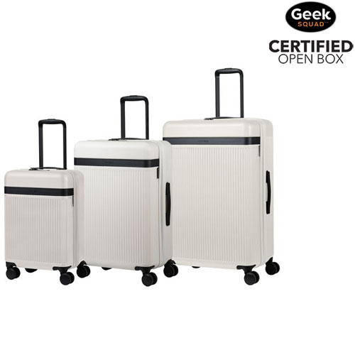 Sophistication meets eco-conscious design in the Champs Onyx Collection three-piece hard side luggage set. This set includes cases of three sizes that are crafted from lightweight yet durable polycarbonate + ABS material. The smooth spinner wheels, USB charging port on the 21" case, convenient TSA locks and expandable capabilities, make packing a breeze for more enjoyable travels.Geek Squad Open Box