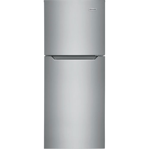 A compact solution for apartments, lofts, and other small spaces, this 24" Frigidaire refrigerator delivers full-sized functionality. It's equipped with 10.1 cu. ft. of space so you have ample room for your fresh and frozen groceries while adjustable shelves and convenient storage options keep your food neat and organised.Open Box - Frigidaire 24" 10.1 CuFt Top Freezer Refrigerator (FFET1022UV) - Brushed Steel -Scratch & Dent