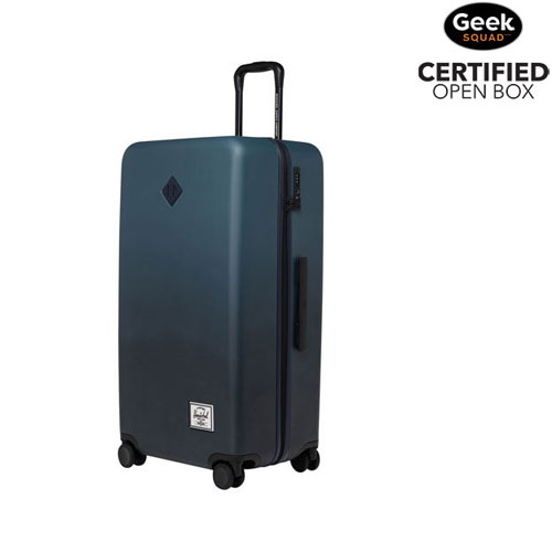 The Herschel Supply Heritage 28-inch luggage is tough, spacious, and ready for any journey. Crafted from 70% recycled polycarbonate, it's impact-resistant and durable. The split design, zippered compartments, and elastic garment straps make packing easy. Inset Hinomoto wheels enable smooth rolling, while the TSA-approved lock keeps your belongings secure.Geek Squad Open Box
