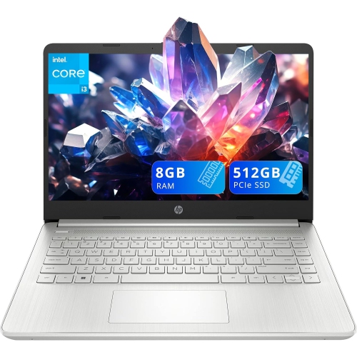 Experience seamless computing with the HP 14" FHD Anti-Glare Laptop, powered by an Intel i3-1215U processor. It boasts 8GB RAM, a 512GB PCIe SSD, and Intel UHD Graphics for smooth multitasking. Features include a backlit keyboard, HD webcam, Wi-Fi, Bluetooth, and a sleek silver design. Runs on Windows 11 for enhanced productivity.