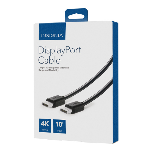 Connect a monitor to a PC or a laptop to a projector with this Insignia DisplayPort cable. Its 10-foot length offers flexibility in making connections, and it supports 4K UHD resolutions for showing crisp, bright colours. This Insignia DisplayPort cable has a fully shielded structure to prevent excessive interference from other components...