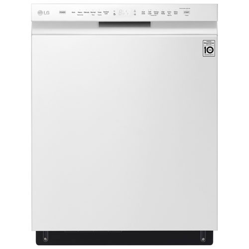 Power through your dirtiest dishes with the help of this 24" LG dishwasher. Designed to make dish duty less of a chore, it's equipped with a QuadWash system that uses four spray arms to blast through food residue, a Turbo Cycle for the toughest grime, and an Express Cycle for speedy clean.Open Box - LG 24" 48dB Built-In Dishwasher with Third Rack (LDFN4542W) - White - Perfect Condition