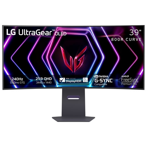 Open Box - LG UltraGear 39" QHD 240Hz 0.03ms GTG Curved OLED LED G-Sync FreeSync Gaming Monitor (39GS95QE-B) - Black
