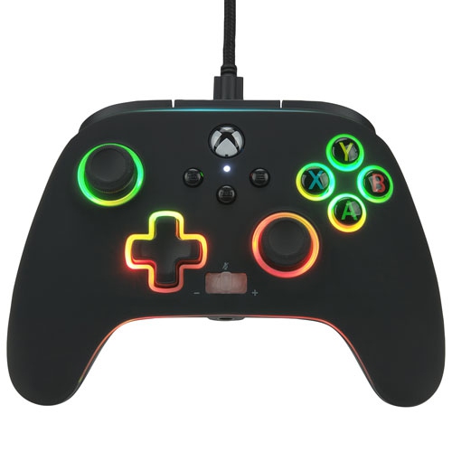 **Open Box product. Minimum 1-year warranty. See more information below.** Get precise control for your Xbox gaming console with the PowerA spectra Infinity Enhanced wired controller. Equipped with multiple intuitive buttons and analog thumb sticks in classic ergonomic profile, it helps you play with total comfort and versatility for any game type. With 3 in-built spectra zones, you can personalise the lighting as you please.