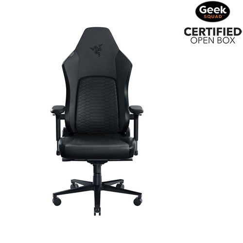 Stay comfortable throughout your gaming marathon with this Razer Iskur V2 ergonomic gaming chair. It features adaptive lumbar support and fully adjustable lumbar curve for optimal and customized comfort and support. High density foam cushions reduce strain on your body. The EPU-grade synthetic leather provides durability and comfort along with a neat finish.Geek Squad Open Box